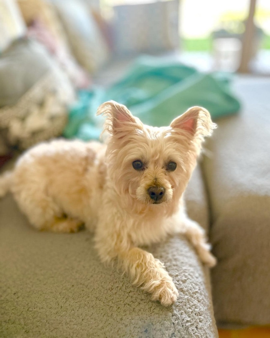 Dixie loves to sleep at the bottom of your bed, though she has her own dog bed.