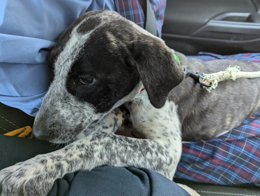 Willy has spent a little time on the lead, but not much and she's working on her sit. She's a fast learner. She's a little bigger than the pictures, but not much, and I still love cuddles more than ever.