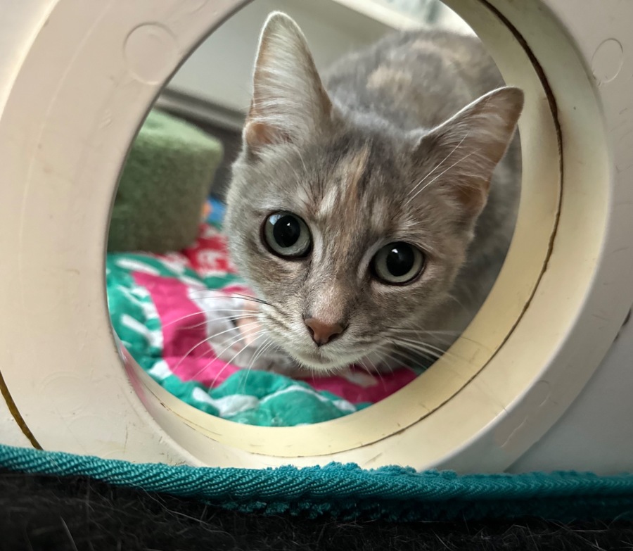 Once she feels the warmth and safety of a new home, expect Violet to blossom, revealing her affectionate and wonderful personality. With a bit of time and care, you’ll get to experience her gentle purrs, her playful curiosity, and her engaging chatter. Violet is a special cat who is ready to find her person and fill their life with joy and companionship.