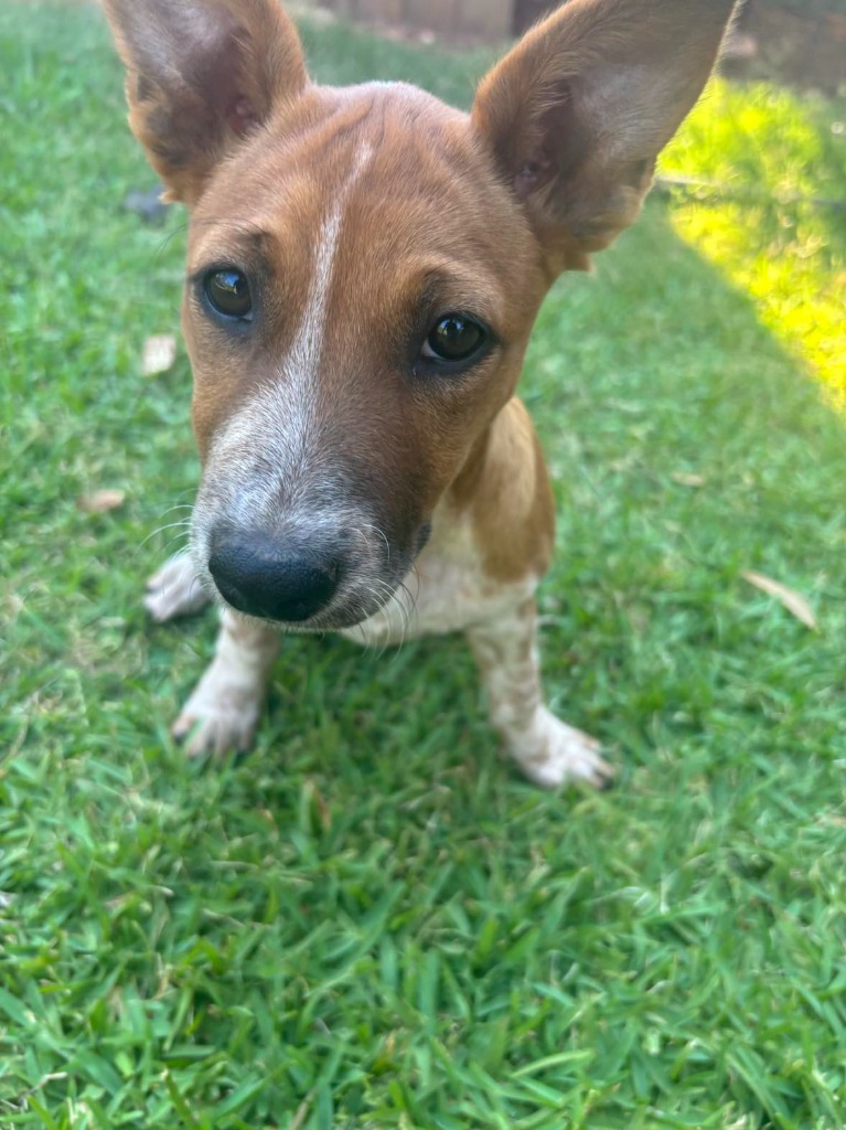 Introducing Gabby, a lively little pup with a huge sense of curiosity! Rescued alongside her mum and siblings from an unoccupied house, Gabby is now thriving in her foster home. She loves playing with her two siblings and two adult dogs, bringing joy and energy to every moment.