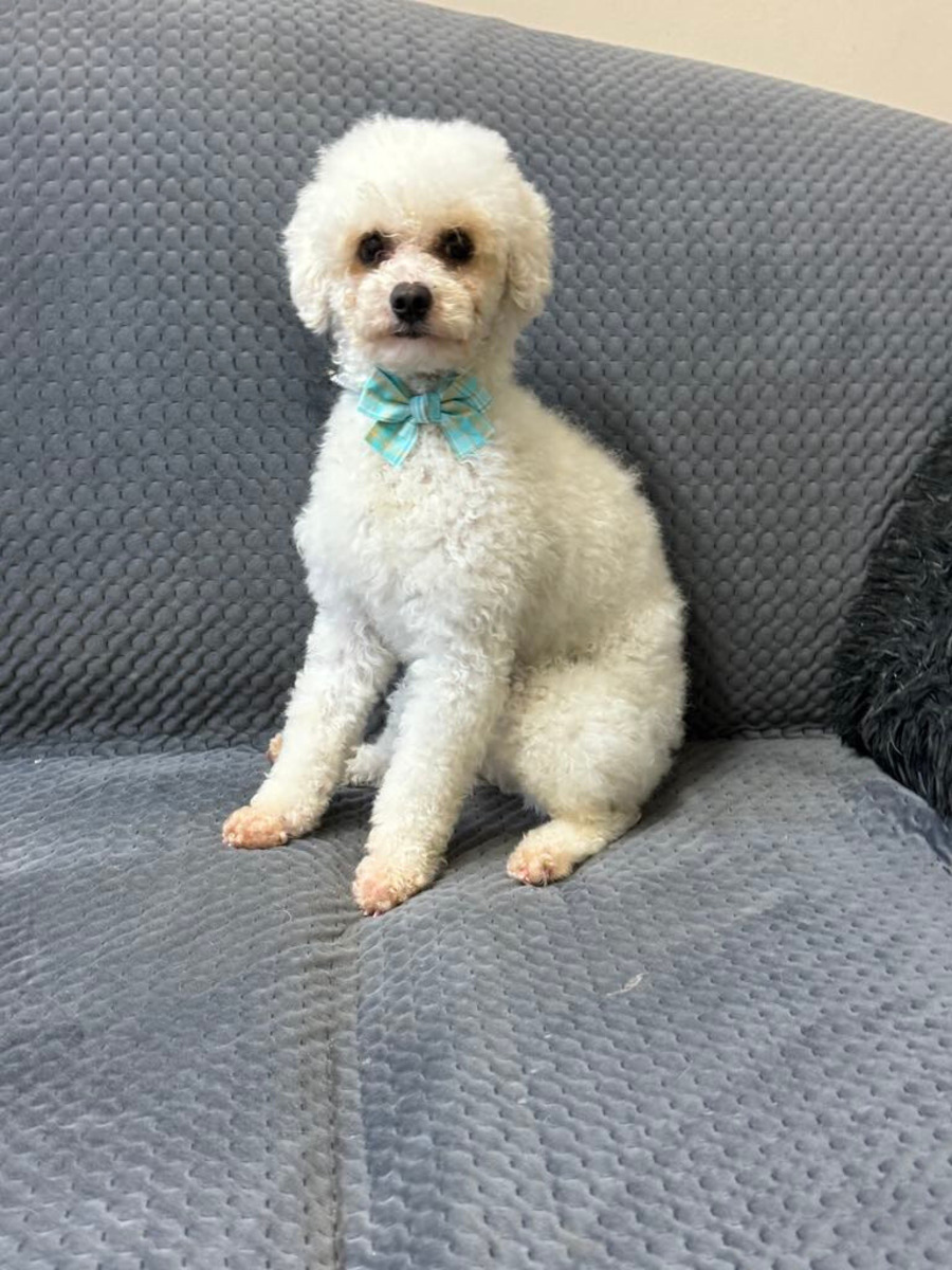 Meet Elias, an adorable toy poodle who embodies the perfect blend of playful energy and loving companionship. As a quintessential lap dog, Elias adores cuddling up close to his humans, bringing warmth and joy to your every day. With his curly coat and heartwarming eyes, he’s bound to be your new best friend in no time.