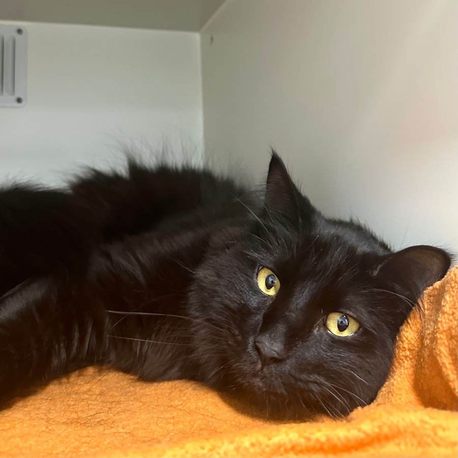 Meet Max, our charming majestic black cat. This handsome boy has a striking coat and an equally captivating personality. Max is a sweet and affectionate cat who thrives on human companionship. he loves chin scratches and will eagerly rollover for some loving cuddles.