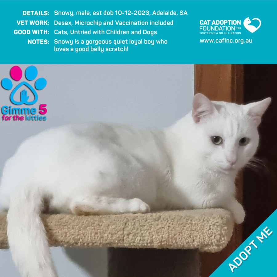 Donate to Snowy Just $50 Limited Time! at Cat Adoption Foundation Incorporated via Shout