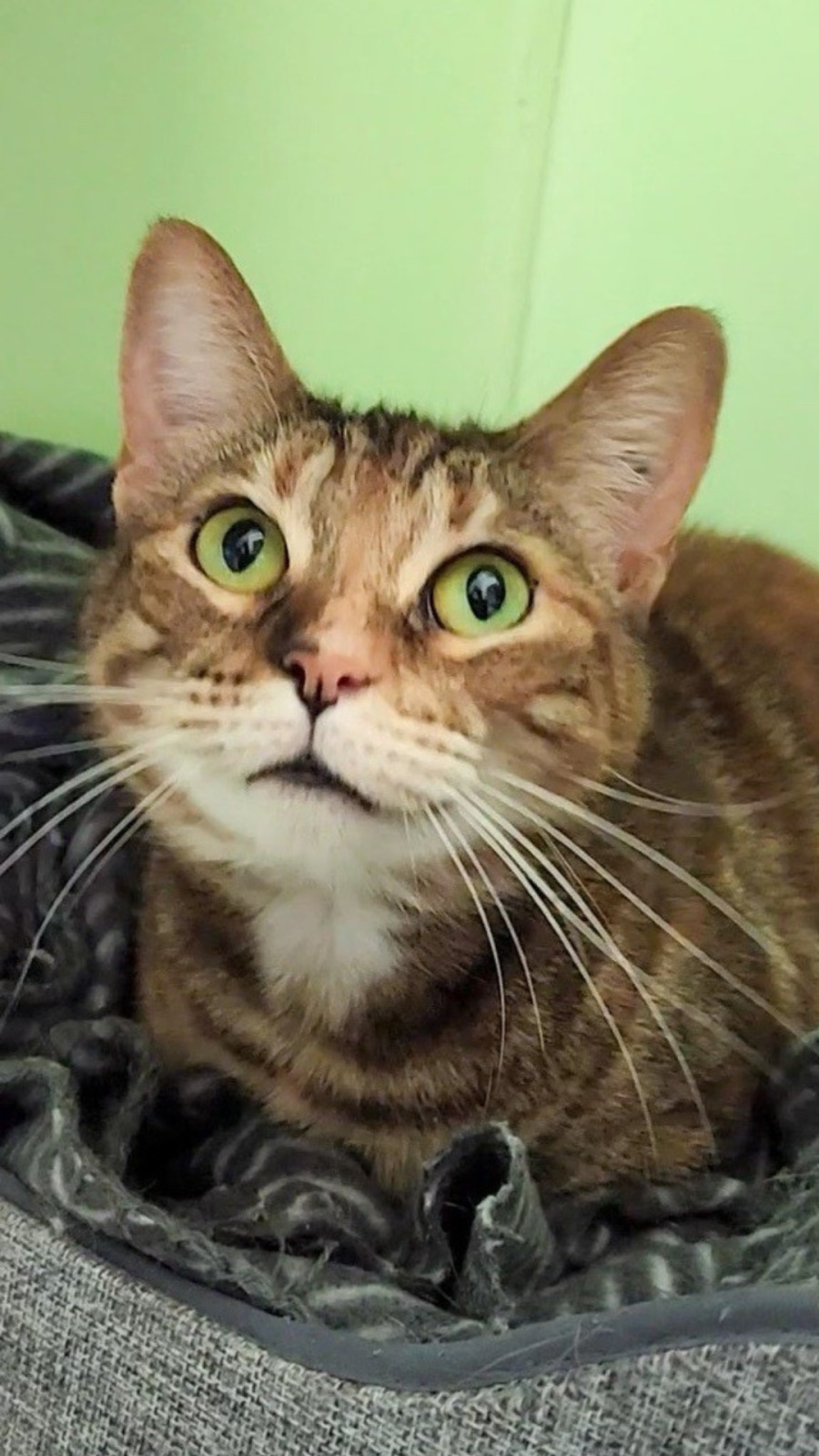 Meet Elka, a delightful 5-year-old tortoiseshell cat with a playful spirit and a heart full of love. This affectionate girl enjoys sunbathing, chasing feather toys, and curling up in laps for cozy naps. With her stunning mix of black, orange, and cream fur and bright green eyes, she’s sure to steal your heart. Elka is ready to find her forever home where she can bring joy and laughter to her new family. If you're looking for a charming companion, Elka is eager to meet you!