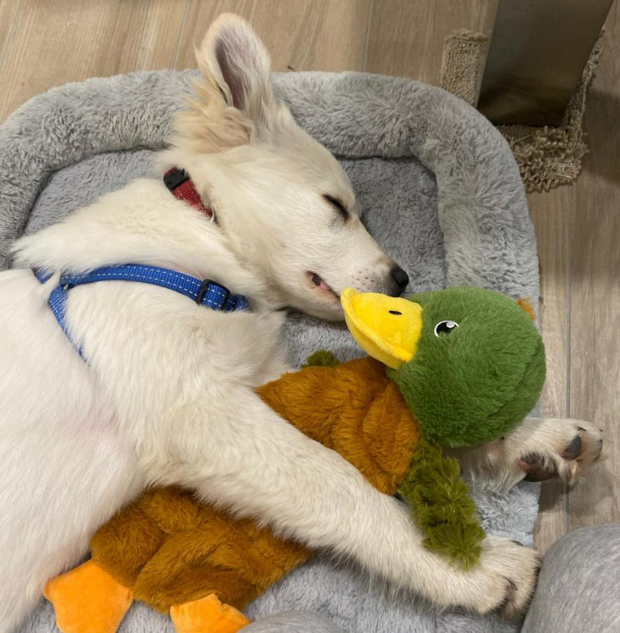 Fraknfurt isn’t very keen on other canines, he may adapt with on going socialisation training but currently he only enjoys play dates with his siblings, his carers are working hard on his socialisation but we believe he’s actually scared of other dogs like he is scared of cats. He’s very active during the mornings and evenings, so ample playtime with toys, activities, and interactions with his human friends will keep him stimulated and happy. During the day, you’ll find that he's quite lazy, perfectly content to nap for long stretches. Sleep is never an issue, as he sleeps soundly through the night and is ready to recharge for another day of exploring and fun.