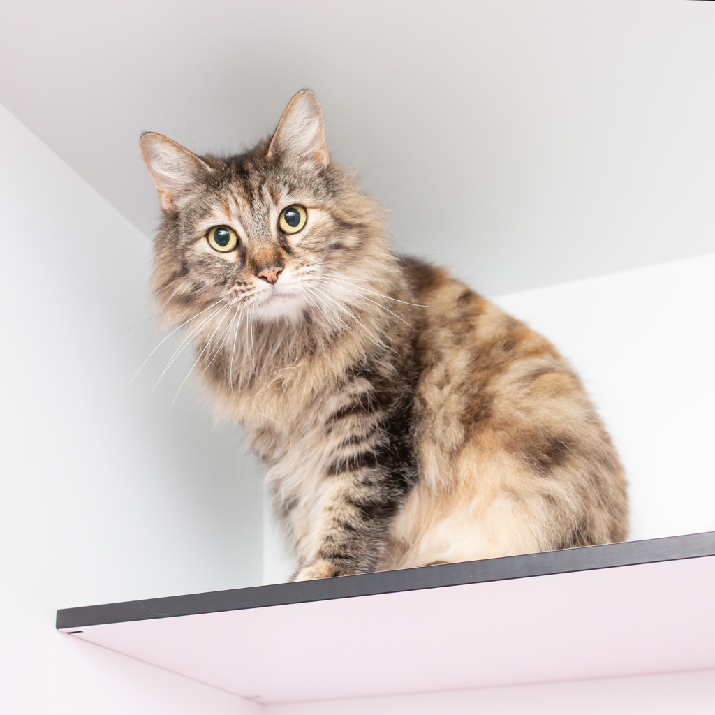 With her stunning long fur and those big, beautiful eyes, Marnie knows she's royalty. All she needs now is a palace (or, you know, a comfy couch) to rule from. If you're looking for a fluffy queen who's ready to be pampered, Marnie is your girl. Just make sure to hide the snacks!