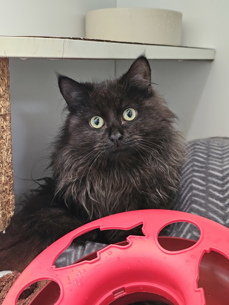 Elroy is a fluffy black kitten with a playful personality and a heart full of curiosity. This little guy loves exploring every nook and cranny of his surroundings, and his inquisitive nature will keep you endlessly entertained. Elroy is also incredibly friendly and loves being around people, always eager for a snuggle after a busy day of play.