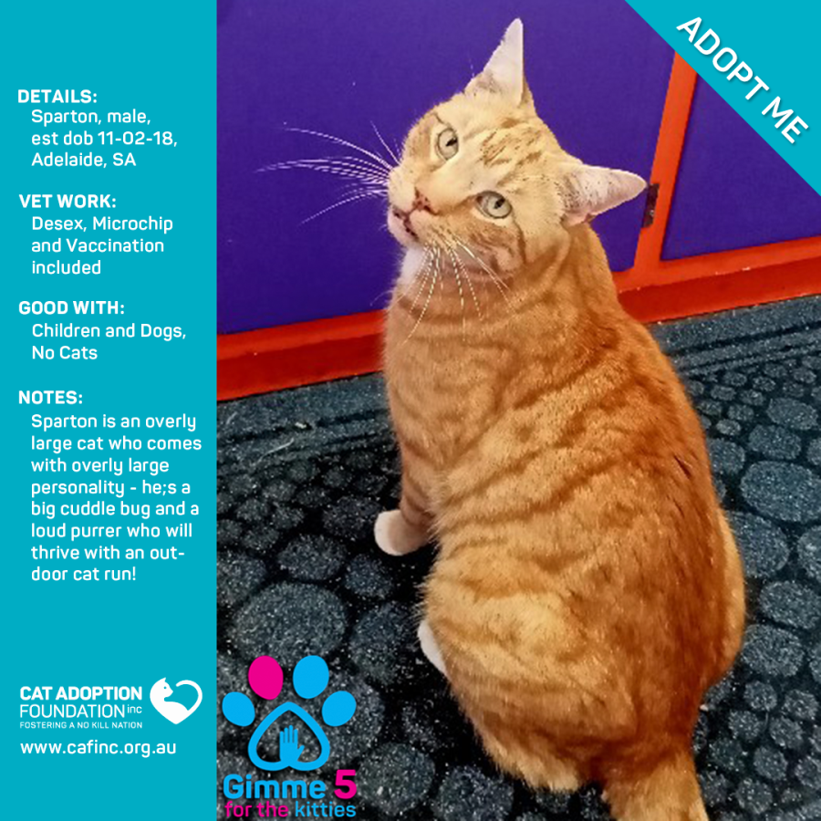 Donate to Sparton Only $40 Limited Time! at Cat Adoption Foundation Incorporated via Shout