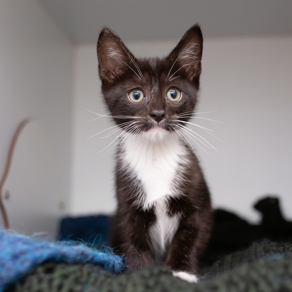 Meet Patrick, the handsome black and white kitten who knows he's a stunner! Patrick doesn't rush for attention-he's confident that love and affection will come his way in due time. With his calm demeanor and adorable charm, he wins hearts without even trying. Intelligent and playful, Patrick enjoys fun playtime sessions, but he's just as happy to settle in for a cozy nap with his favorite humans afterward. If you're looking for a kitten who brings beauty, brains, and a laid-back attitude, Patrick is the perfect addition to your home!