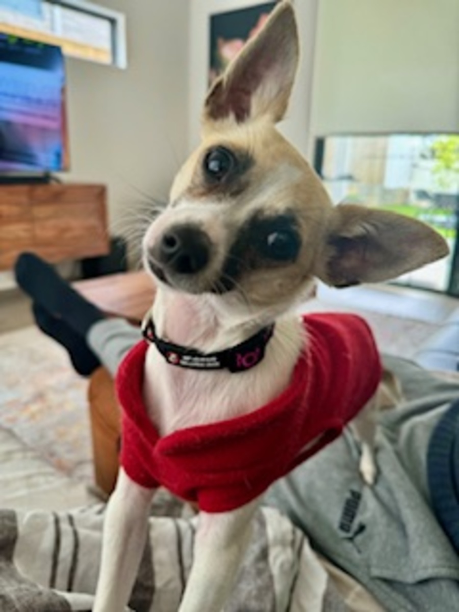Meet Roxie, a delightful Foxie x Chihuahua mix who embodies a gentle and joyful spirit. Roxie is the epitome of a loving companion who adores spending her days basking in the sunshine, playing with her beloved cat friends, and cuddling on the couch with her humans.
