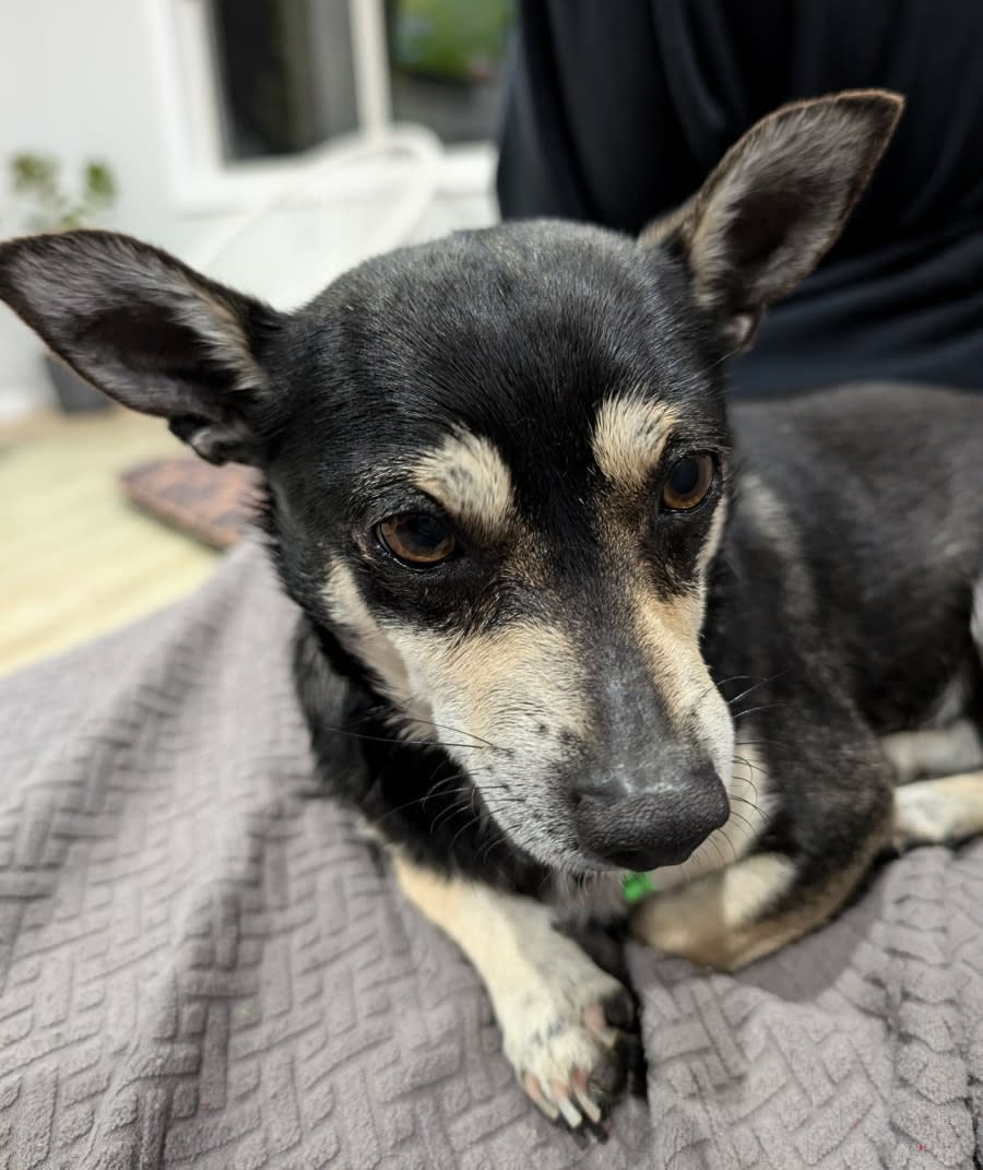 Benji is a only a little man, we think Chihuahua x Mini Foxy. He is an active little man who loves to follow his humans around the house but also loves a nap on the couch. He is a little hesitant/nervous to be held or cuddled at this stage, but he is warming up to his human foster parents. He definitely wants to know where you are and once he is comfortable with his environment he will crave knowing what you’re doing.