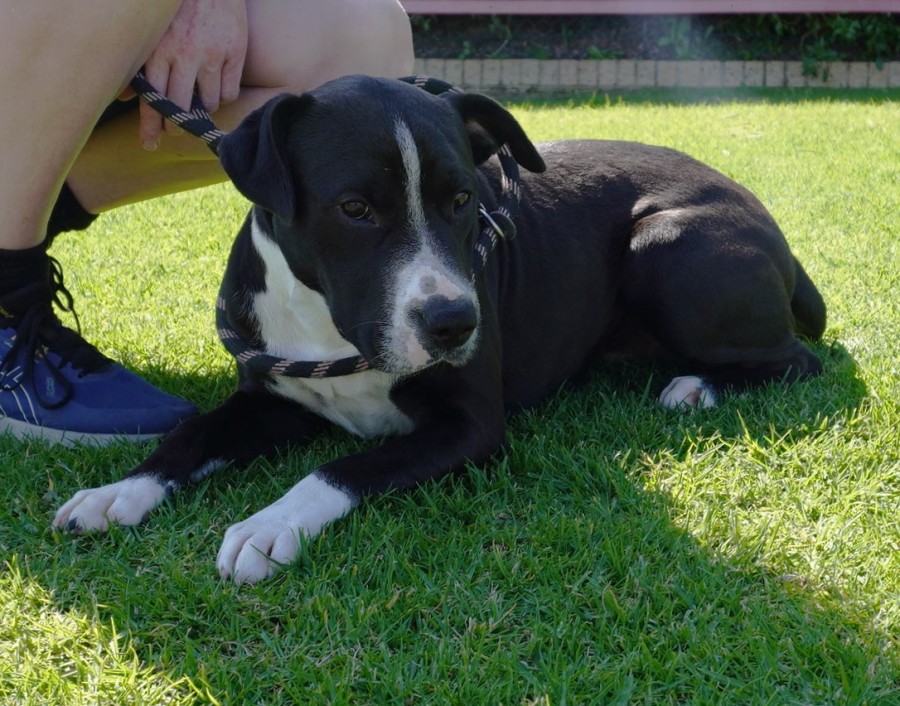 Channelle is a sweet-natured Staffy mix with a heart full of affection. Her gentle, social nature makes her an instant hit with everyone she meets, whether it's people or other dogs.