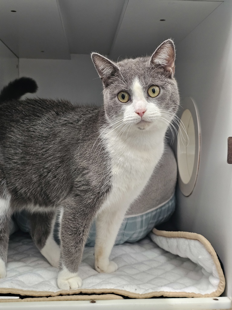 Looking for a purr-fect companion who's as handsome as he is affectionate? Look no further than Tom! This stunning blue and white boy is an absolute heart-stealer with his dreamy eyes and soft, velvety coat. But it's his smoochy nature that will really win you over!