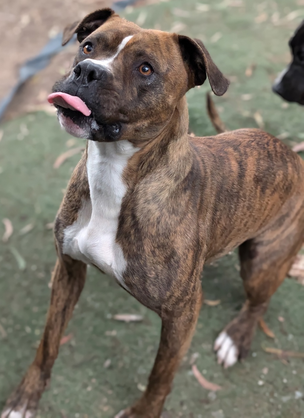Anna Banana Lovelace is a 2-year-and-6-month-old Boxer cross who is the definition of a gentle giant. Weighing in at a solid 32 kilograms, she hilariously thinks she's only 1 kilo and loves nothing more than being close to her favorite people. Her affectionate nature shines through as she constantly seeks attention, cuddles, and a cozy spot to rest right beside you.