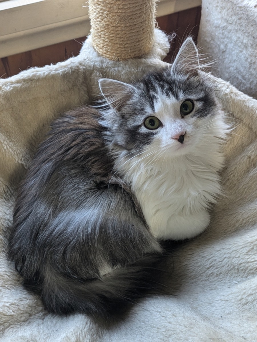 Meet Chai, a gentle and cuddly feline who is searching for a loving new family. Chai is a lovely mix of shyness and playfulness. Though she may be timid at first, her gentle spirit shines through, making her an ideal companion for a quiet and peaceful home.