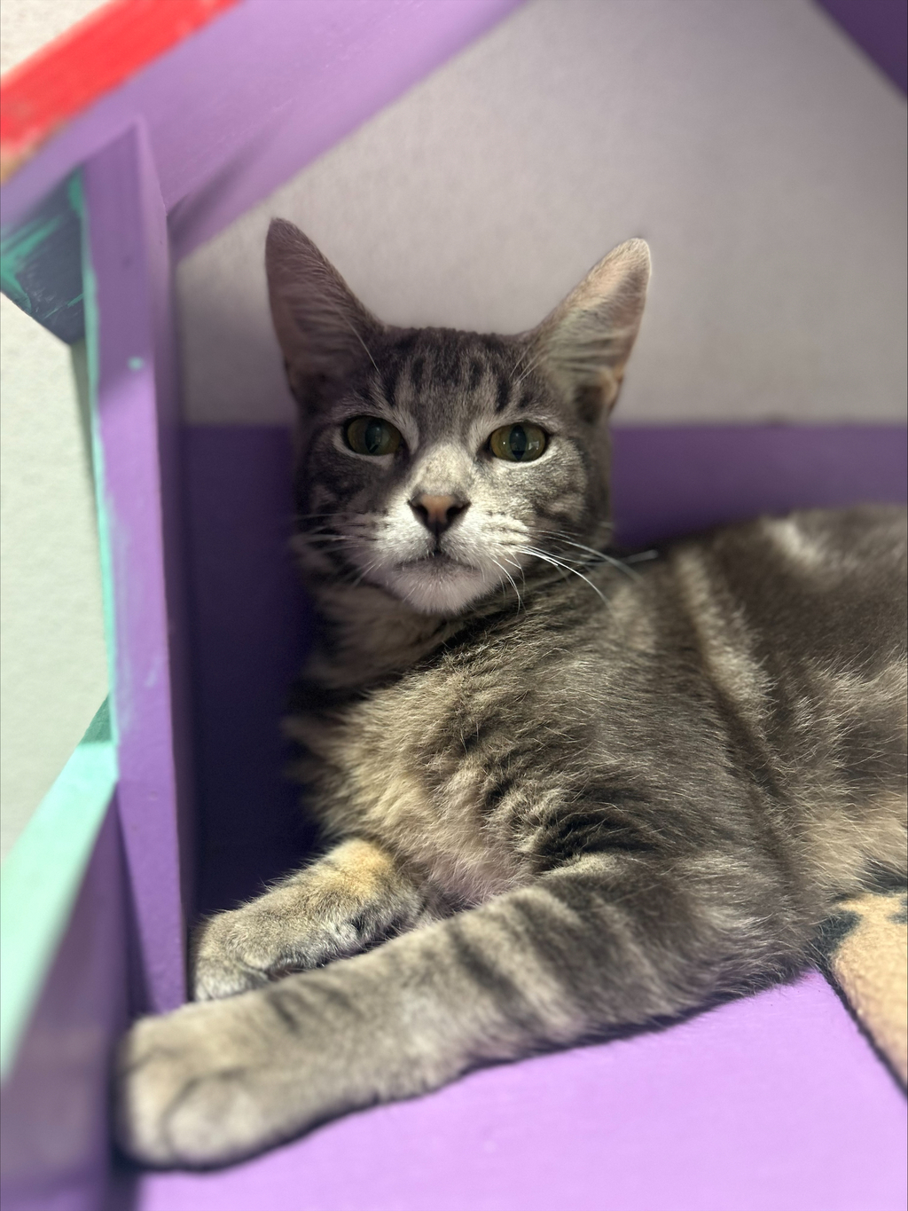 I'm a young feline with a zest for life. I love to play, whether it's chasing a ball or pouncing on a feather. My energy is infectious, but don't worry, I also know when it's time to unwind. I love cuddling up next to someone and purring softly. I'm a gentle soul, never too rough, always considerate. I'm quite the social butterfly too. I love meeting new friends and I'm always the first to say hello. I promise to make every day brighter with my playful antics and my sweet purrs!