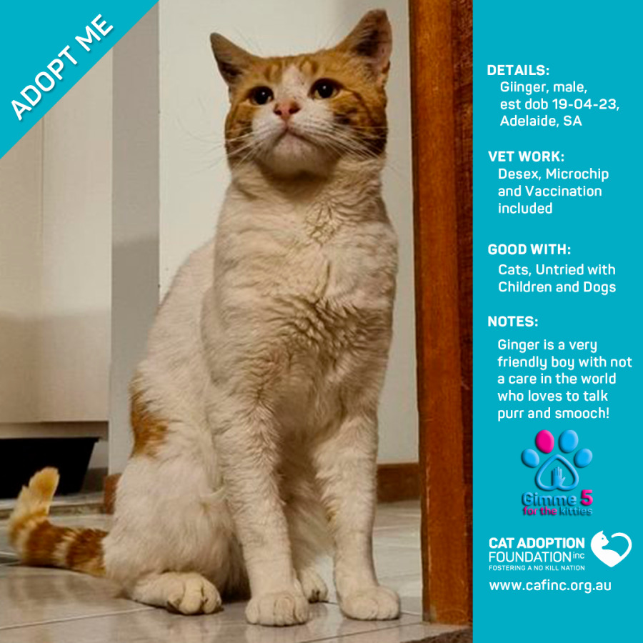 Donate to Ginger Only $40 Limited Time! at Cat Adoption Foundation Incorporated via Shout