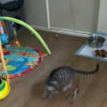 This shy sixteen week old kitten still prefers not to be picked up but will come up to you for a pat or rub when you’re sitting near her. Happily she loves being around both humans and animals and will seek both out - though she will probably hide when you first come to meet her!
