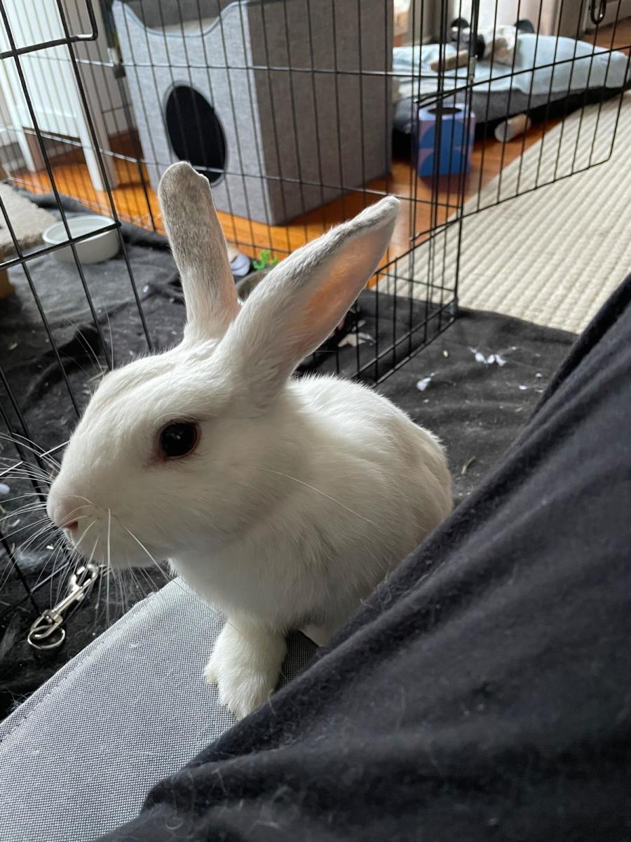 Meet Snowy, an incredibly curious and sweet senior rabbit who's looking for a loving new family to call her own. Snowy is the perfect companion for anyone who appreciates a pet with a gentle heart and an inquisitive nature. Her endearing personality shines through in everything she does, making her an exceptional addition to any home.