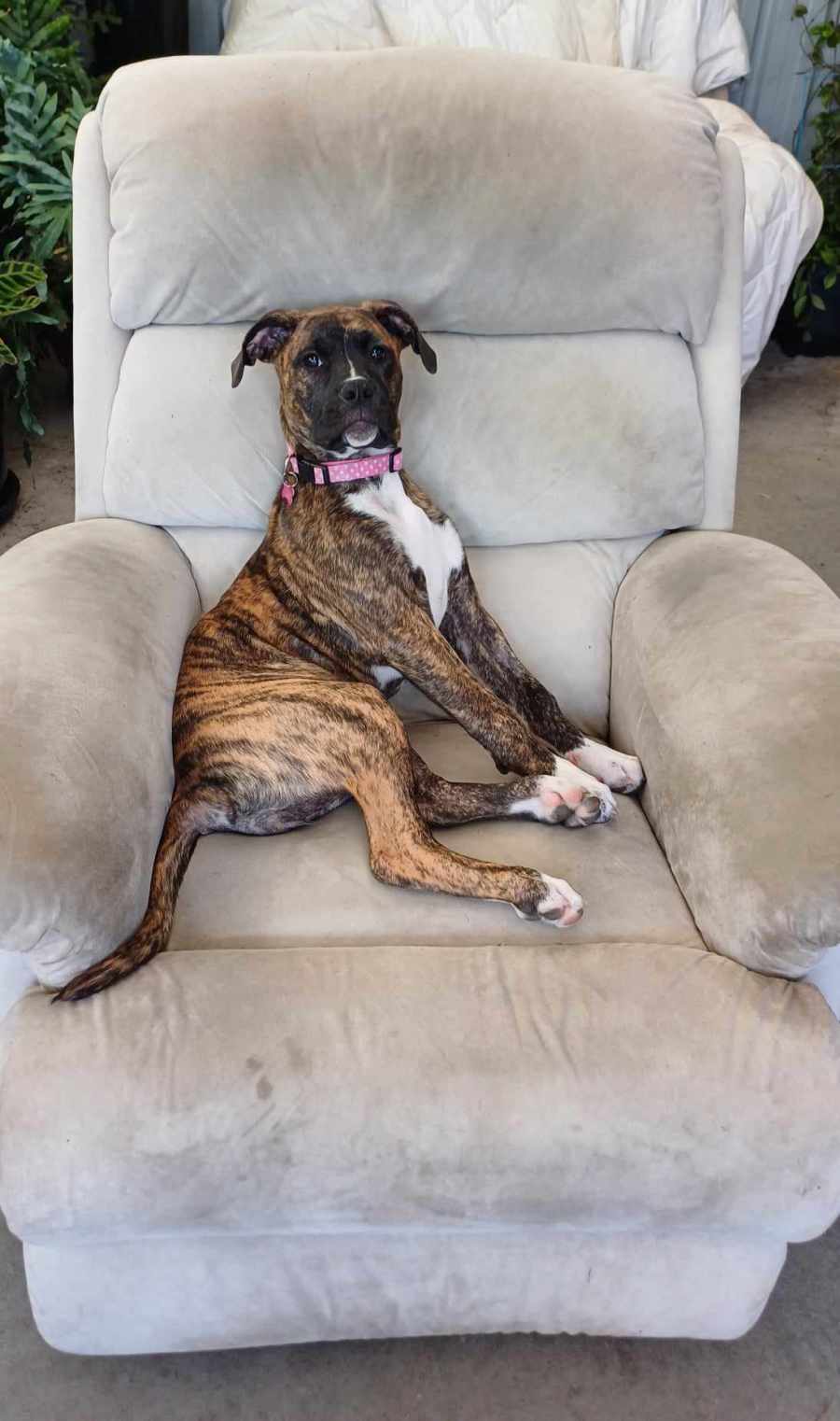 Arisa is a beautiful girl, affectionate and loving girl. She is sister to Grae (recently adopted), Saya and Keegan. We are still awaiting the DNA Results but we are thinking Staffy x Mastiff x Boxer.