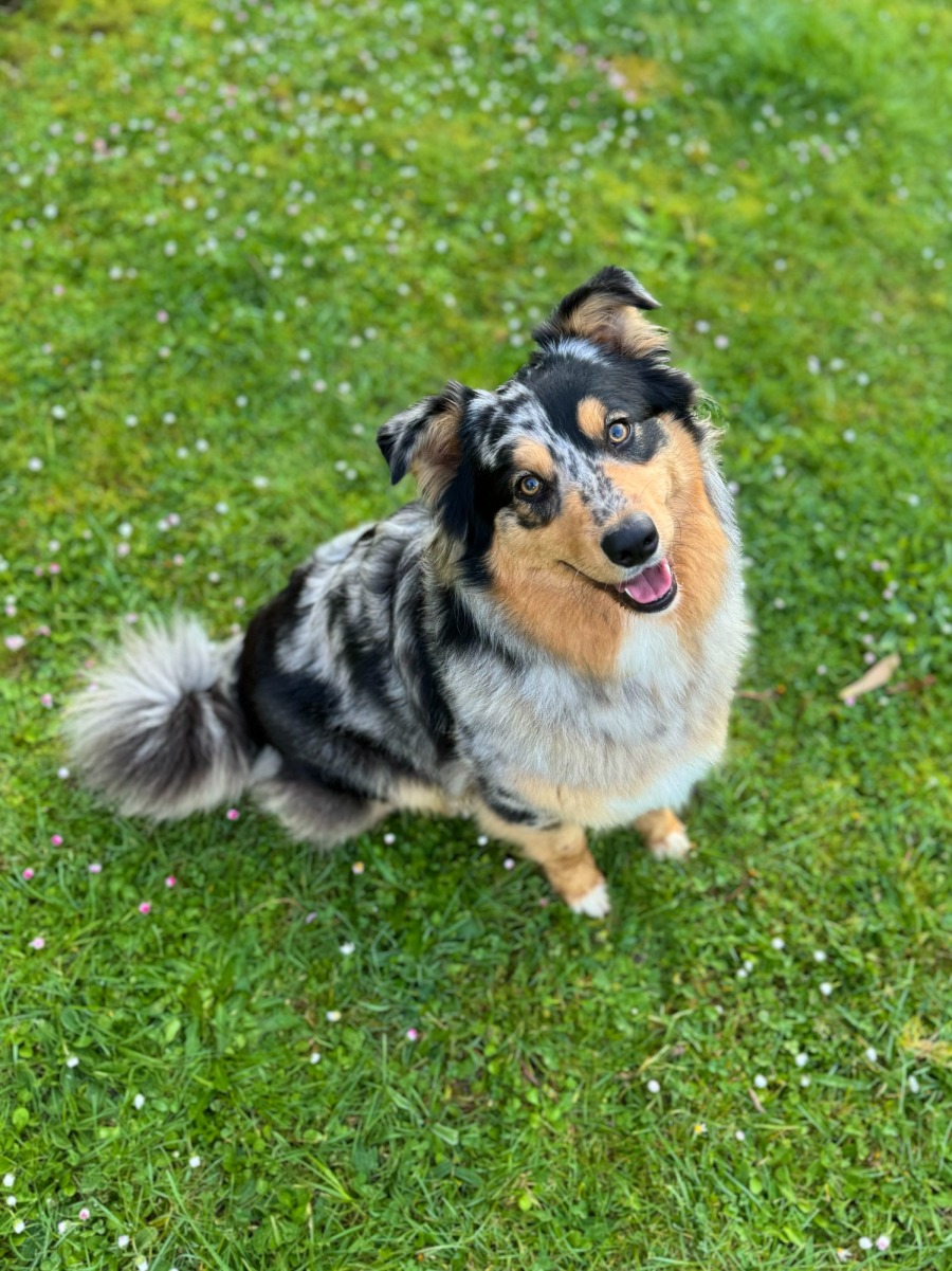 Hi my names Ellie! I’m a one year old Australian Shepherd with the most beautiful blue merle markings and soft cuddly coat.