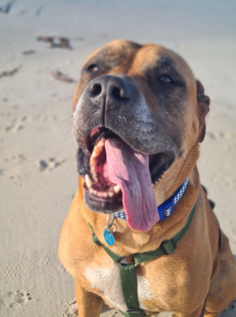 - Hi, my name is Lucy! I am a big gentle couch potato and my foster family say I am very sweet. I love to please them and always greet them with a big smile and a waggy bottom!