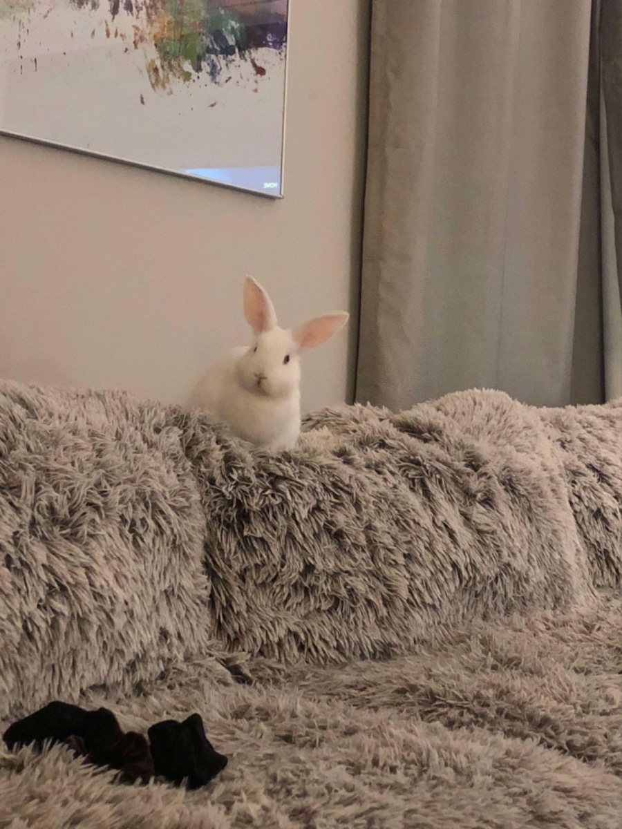 Kenny is a true daredevil, often seen zipping around corners and sliding across the floor in a flurry of movement. He loves to binky, which is that joyful leap rabbits do when they're feeling playful and carefree. Kenny will binky and bounce until he simply can't anymore, at which point he'll hop up onto the couch, make himself comfortable, and demand all eyes be on him. This rabbit is quite the showman!