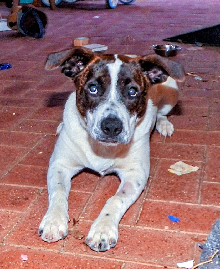 I've lived with kids before, but I can be a bit jumpy for the little ones. When I lived with three little people I loved playing with them; we were the bestest friends in the world. I'm very curious and liked to check out new things with them when I was allowed to. I'm unsure at first with new people and don't like it when they try to introduce themselves too fast, after all I am still a puppy and that can be a bit scary. When you let me come to you though at my pace it only takes a few minutes and I'll be on your lap giving you the biggest puppy kisses.