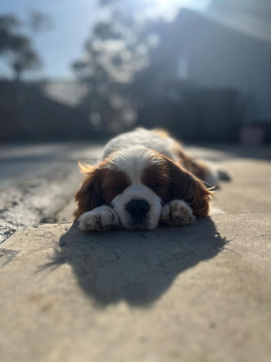 She currently sleeps in the bed with her foster carer, as she loves a snuggle. But will also sleep in her own bed or in a crate.
