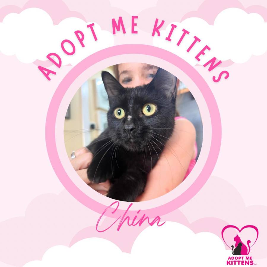 China is clean and litter trained. She came into care through our friends at Douglas Pets.