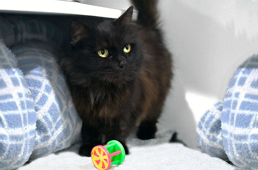 Staff Comments: Caviar is a beautiful cat once she's comfortable. She needed additional time to settle into her condo. She's a very calm, quiet cat that will tolerate most affection. She is super sweet & loves pats & and cheek scratches.