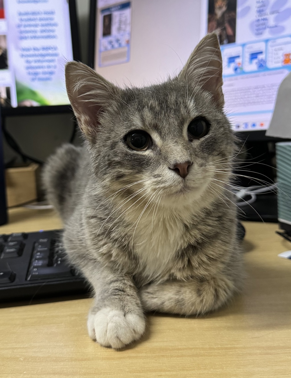 Ashley is a charming and social gentleman with a heart as big as his purrs. This handsome boy is all about making friends and sharing his affectionate nature with everyone he meets. While Ashley isn't a fan of being picked up, he absolutely adores chin scratches and pats, and he'll lean into your hand with pure joy.