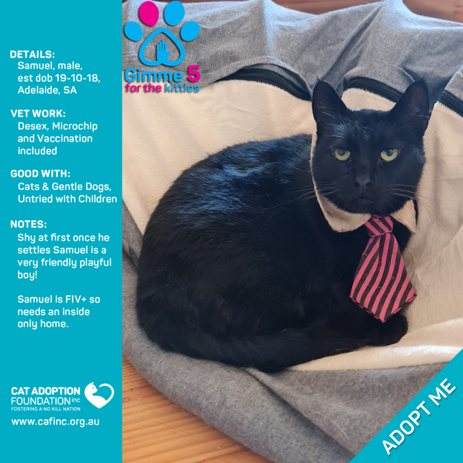 Donate to Samuel at Cat Adoption Foundation Incorporated via Shout