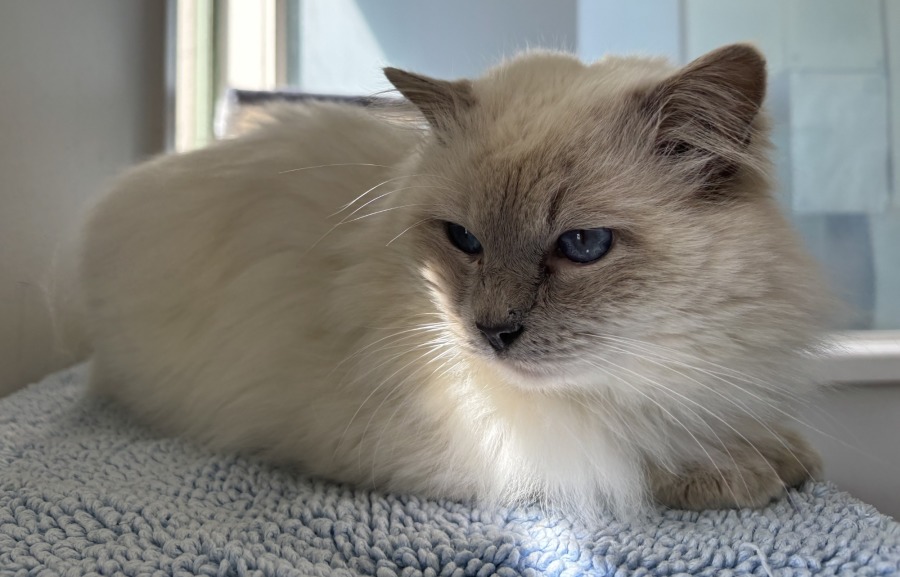 A devoted friend and loyal companion, Mac is ready to fill your days with love, affection, and joyful purrs. Whether you're an individual or a couple, Mac is eager to be a cherished part of your life. With his sweet disposition and enchanting blue eyes, he's sure to bring an abundance of joy to your quiet home.
