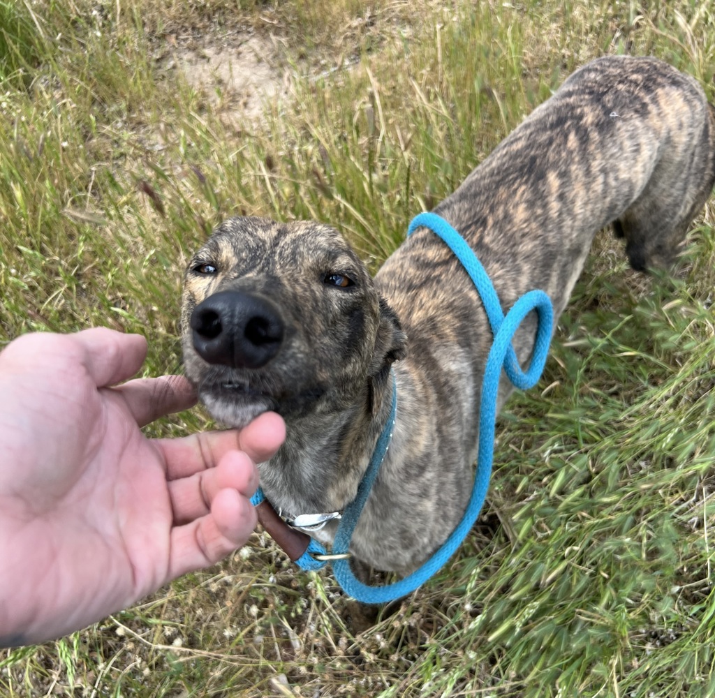 Meet American Angel, a 2-year, 9-month-old brindle Greyhound with a personality as stunning as her sleek, dappled coat. This superstar-in-the-making may have left the track behind, but she's still got the playful energy of a champion. Angel absolutely loves toys-though the concept of bringing them back is still a bit of a mystery to her! You'll find her racing around with her toys in tow, living life on her own terms and always keeping things fun.