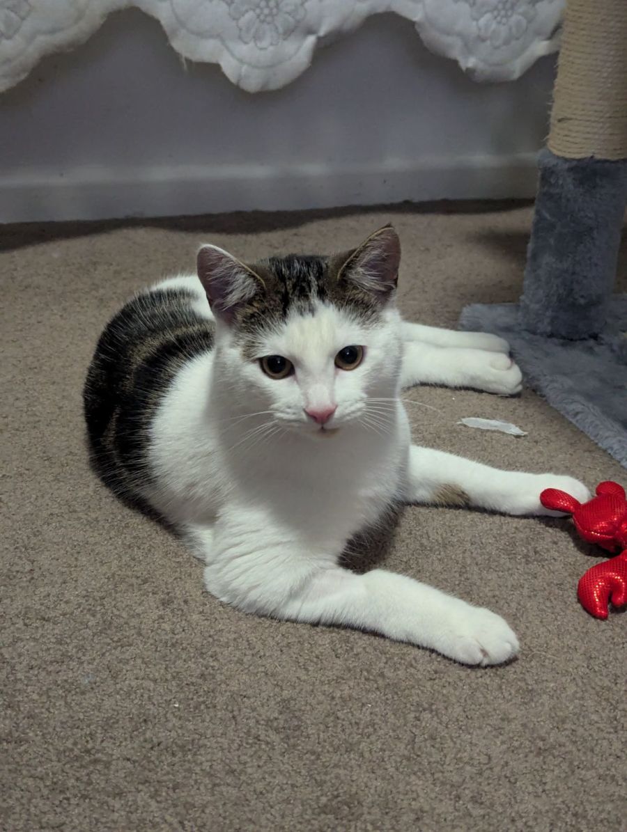 Jagger is an independent boy who can be cautious of other cats at first but soon comes around. He is curious and playful and loves snoozing in the sun. He loves pats and will snuggle up with you at night. He will sleep anywhere he fits including the washing machine, sinks, windowsill and in bags which adds to his funny personality.