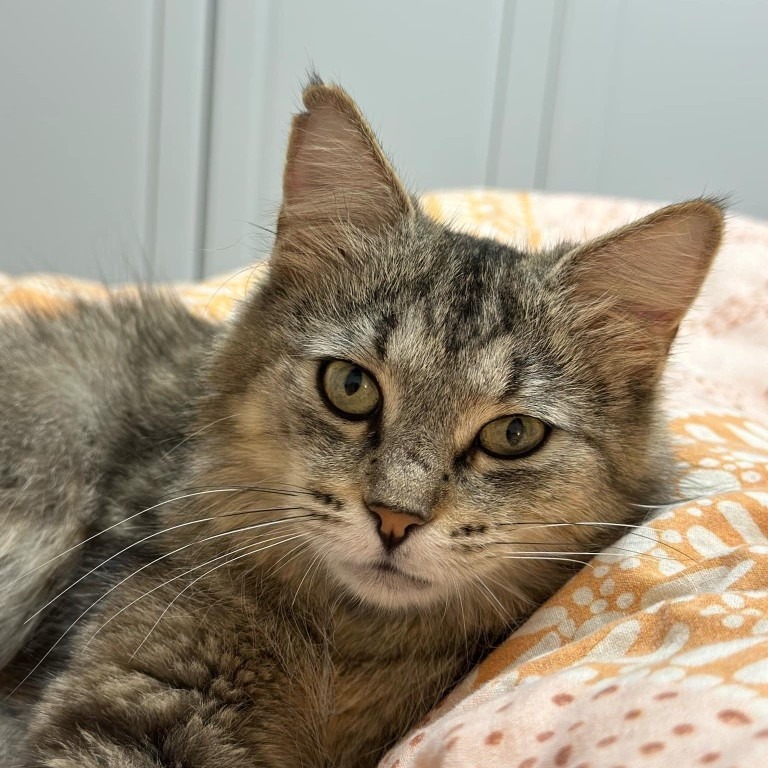 She has a gentle, steady temperament and a soft way of moving through the world. Pluvia enjoys sunny windowsills, quiet company, and slow, thoughtful interactions. She would thrive in a home that appreciates a mature cat who brings warmth, serenity, and companionship without demanding constant attention.