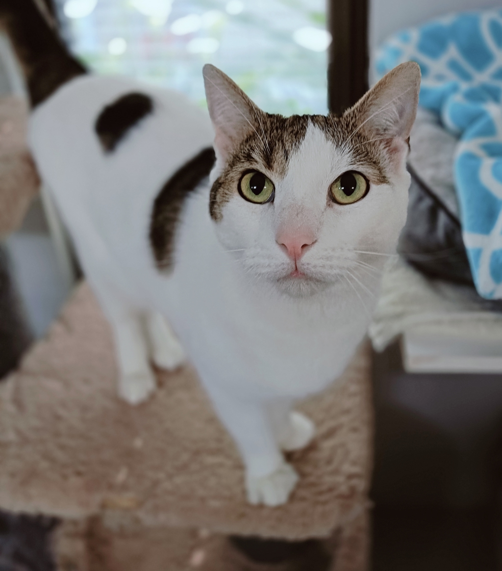 Meet Serosh, also known as Patrick! This handsome male tabby and white cat is a lovely, smoochy boy just under 2 years old. Serosh is an inquisitive feline who loves gazing out the window and enjoying the quiet life. He would do best in a single cat household as he does not get along with other cats, but he will make a loving and loyal companion for his lucky new family.