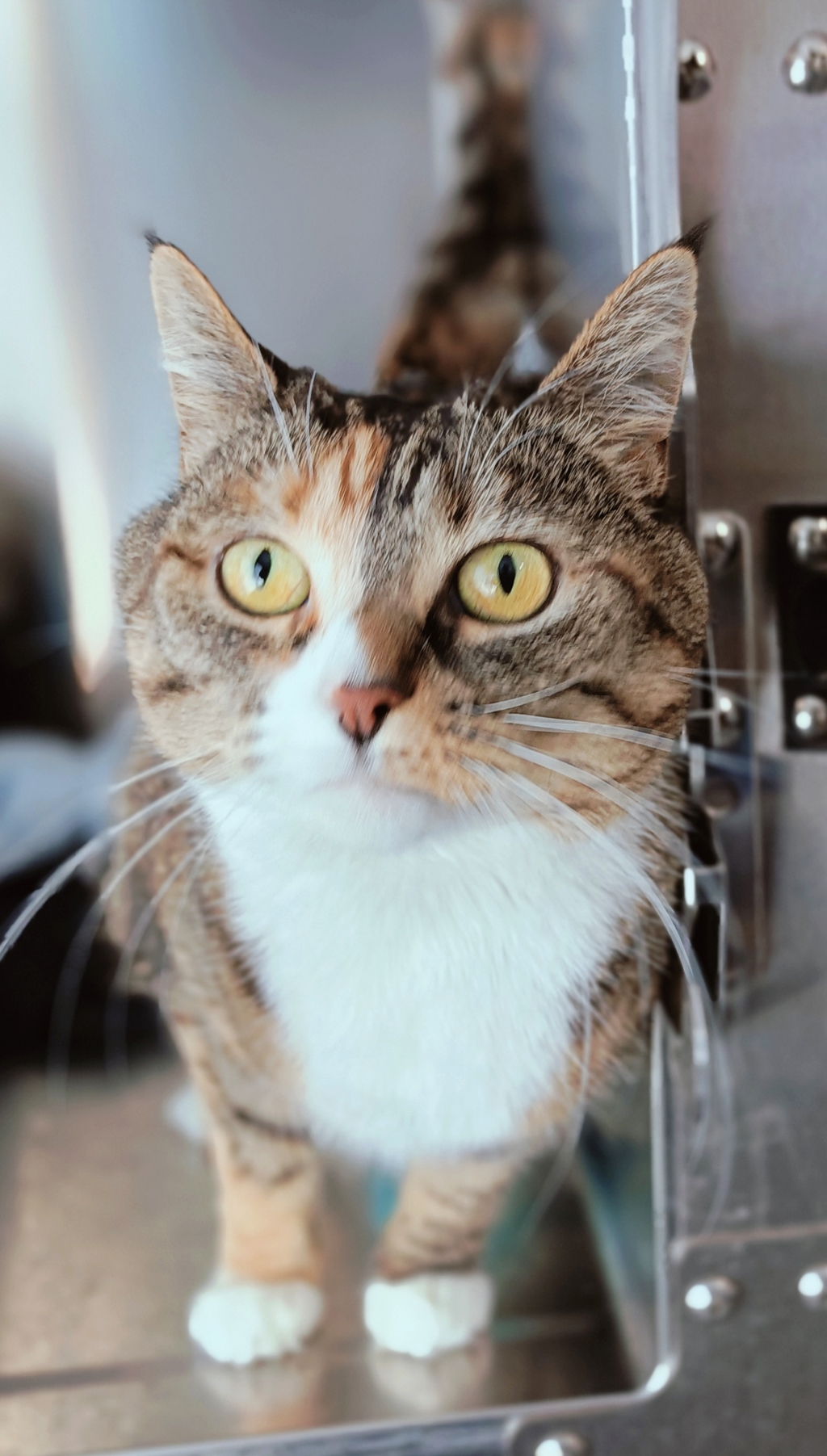 Bikki is a gorgeous tabby/torti female cat who is 9 years old. This sassy girl is looking for a quiet home where she can be the center of attention. Bikki would love a home with an outdoor cat enclosure as she enjoys spending time outside. Despite her independent nature, Bikki is a loving and affectionate cat who enjoys cuddles and snuggles. However, she is not a fan of other felines and would do best as the only cat in the household.