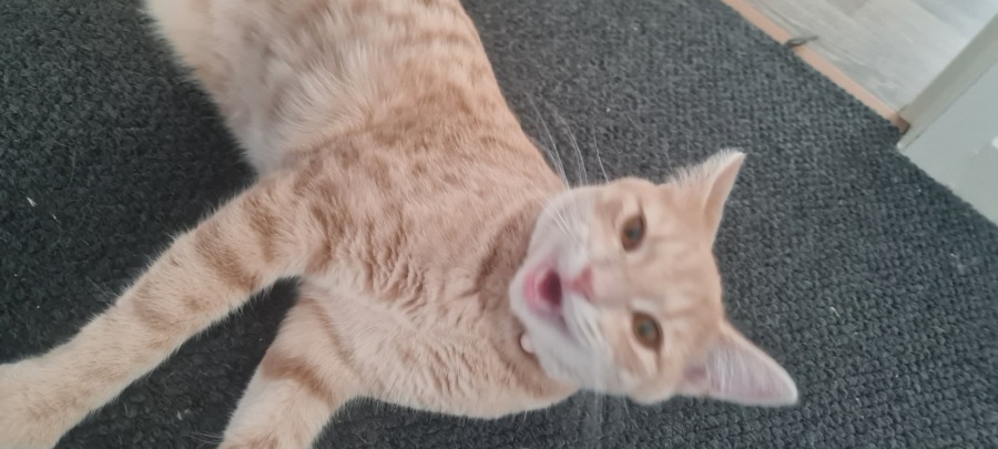 While Cheesecake prefers not to be picked up, she more than makes up for it with her love for snuggling beside you. She's the type of kitty who enjoys lounging next to you on the couch or curling up beside you during a lazy afternoon. Her gentle nature makes her an ideal companion for those seeking a loyal friend to share quiet moments and heartfelt purrs.