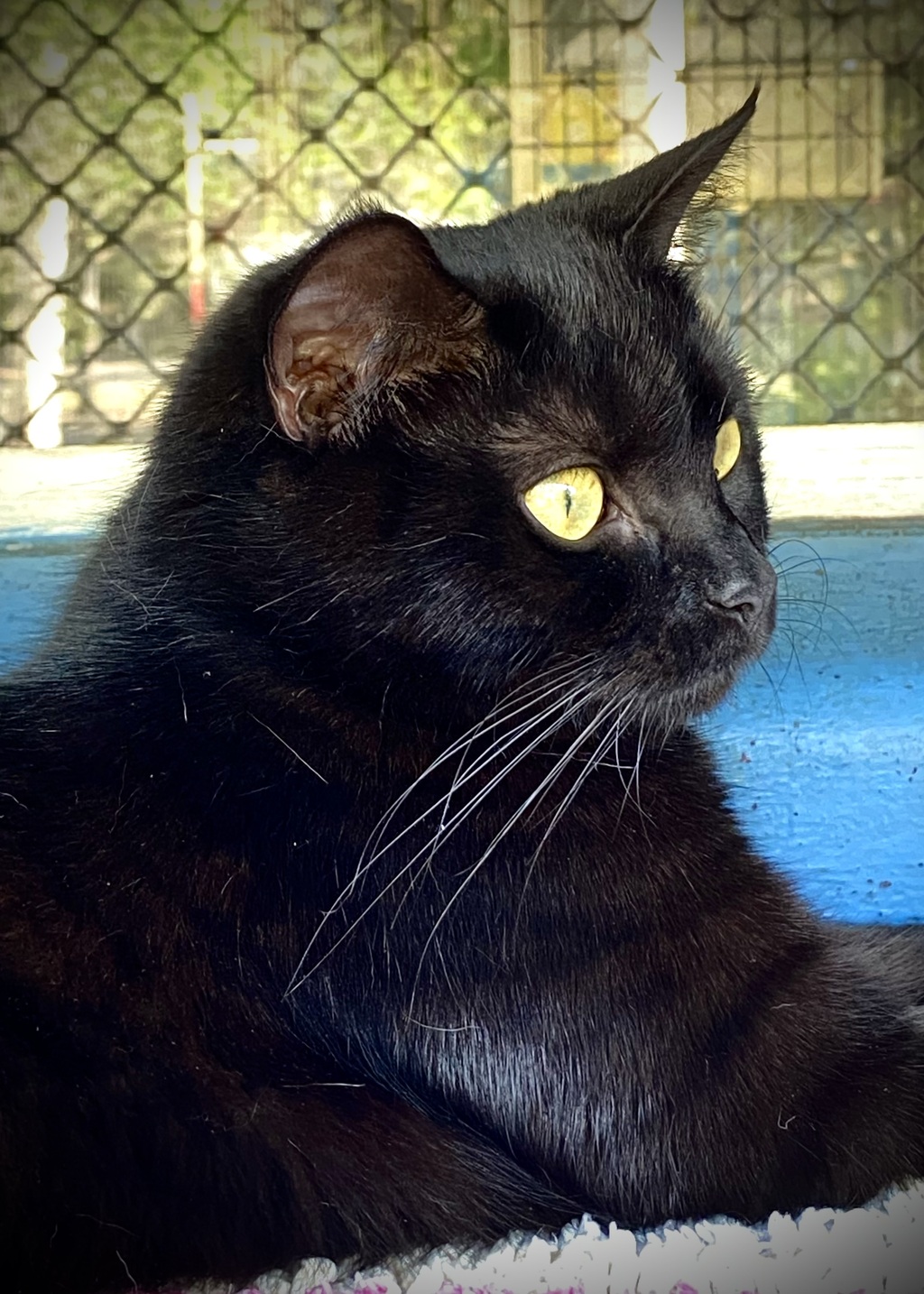 STANDOUT FEATURES:- Delilah is blessed with a beautiful, thick coat of black fur and stunning, clear yellow eyes. She has been given a big thumbs-up by her vet as being 'happy and healthy'. That's a standout feature.
