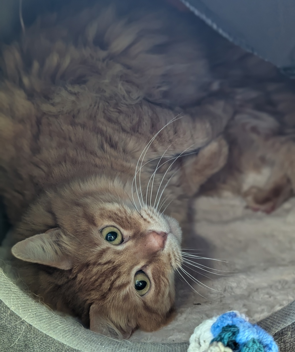 Hi there, I'm Ginge! I'm a 9-year-old senior cat with a gentle soul, and I'm on the lookout for a new forever home that's as calm and cozy as I am. I'm a pretty laid-back guy who enjoys a mix of companionship and alone time. If you want me to come out and keep you company, I'm all for it! But if you're busy or just want to chill, I'll be perfectly content lounging in my favorite spot for the day, catching some sun or dreaming about my kitten days.