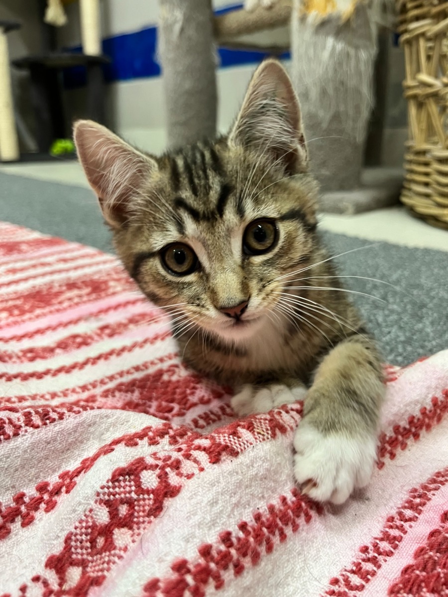 I enjoy sitting in your lap and purring, but also love to run around with all my toys. I'll definitely enjoy the company of other young cats but will also enjoy time with just you too.