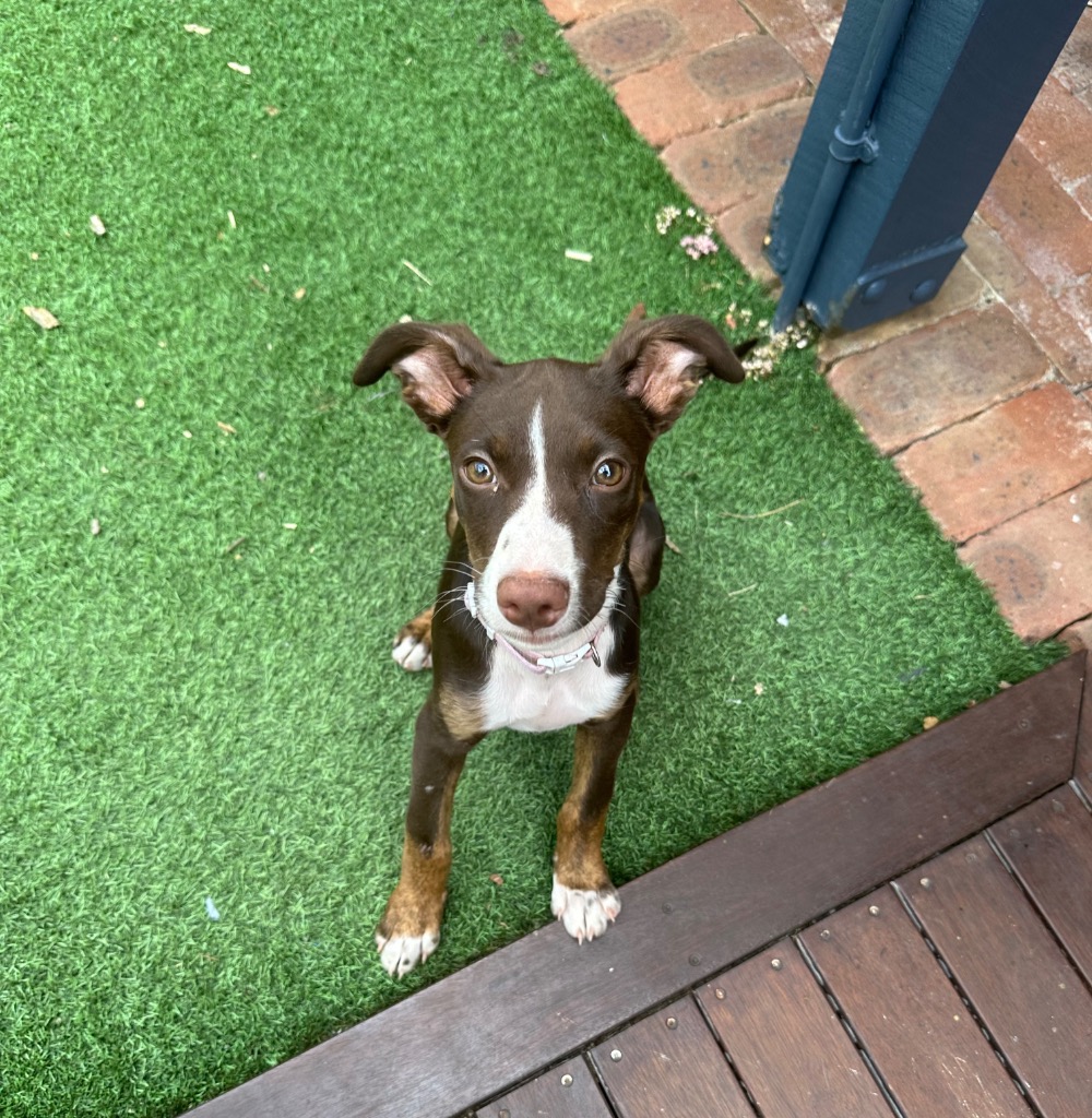 Turbo is learning to sit for treats by copying Aunty and Uncle, and he’s also figuring out how to ask to go outside for potty breaks. This clever little dude is picking up skills fast and loves showing off what he’s learned!