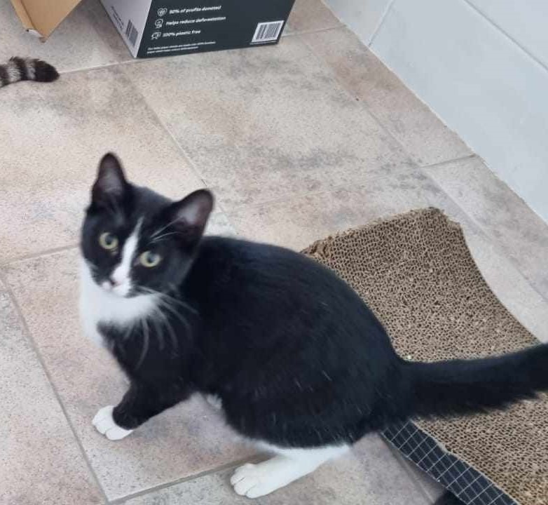 Catniss is a delightful 6 month old kitten with a heart full of love! Rescued from a regional pound, she is now ready to find her forever home. With her striking black and white coat and playful personality, she’s sure to bring joy to any household.