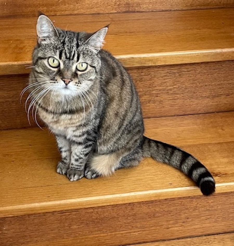 Meet Dee Dee, our endearing older cat who finds comfort in cozy hideaways and has a heart full of love to give.