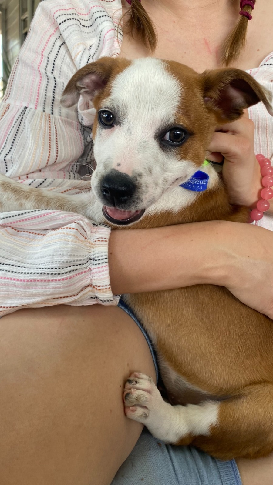 Meet Basil, a gorgeous Kelpie cross pup with the biggest brown eyes and a gorgeous tan and white coat. Basil has a playful and fun demeanour, though that doesn’t stop him from soaking up all the belly scratches he can get. He loves to run about and wrestle with his siblings, and he adores playing tug-of-war with any toy he can find. In his down-time, you can find him snuggled into his bed and soft toys, or napping and soaking up the sun.