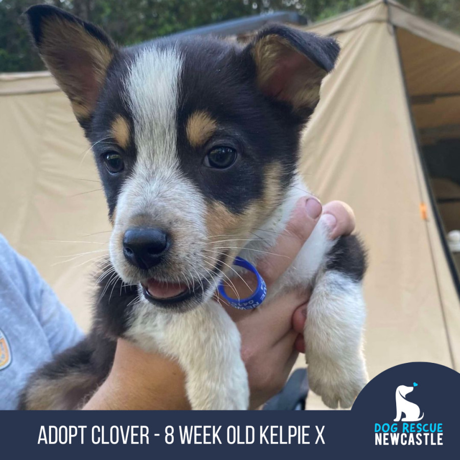 Introducing Clover, our charming 8-week-old male Kelpie cross puppy. This fluff ball would like you to know that his captivating looks are just the beginning of his charm! Sporting a glorious tri-colour Collie coat, this distinguished young man delights in channelling his working dog heritage and zooming around his siblings with great enthusiasm. However, his playful antics are all put well aside when it comes to his number 1 favourite pastime…napping. After a spirited play session, Clover loves to snuggle up and catch some Z’s, often seeking the warmth and comfort of his carers or siblings. This affectionate pup is a true sweetheart and has no objections to being carried around, wrapped in his carer's jumper like a cosy little baby. Clover’s gentle nature will make him an ideal companion for families or individuals looking for a loving and loyal friend.