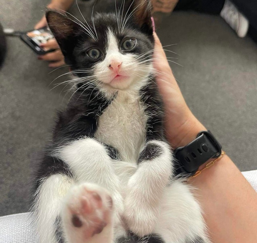 He is a 10/10 kitten who was born into care so is super social, friendly and loves a lap cuddle. You wouldn’t want much more from a kitten.