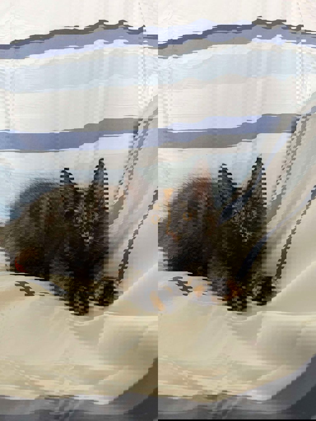 I love to explore, sleep in the kitten hammock, sprawl out in the sun, and play in boxes. I really enjoy my food too. I'm quite partial to a bit of bbq chicken. I am a very gentle girl and love to be cuddled. They say I have such a loud purr for such a little body, and that I give the best cuddles around your neck and kisses on your face.